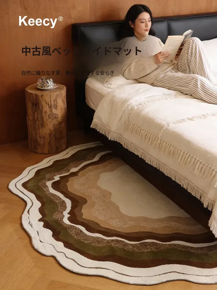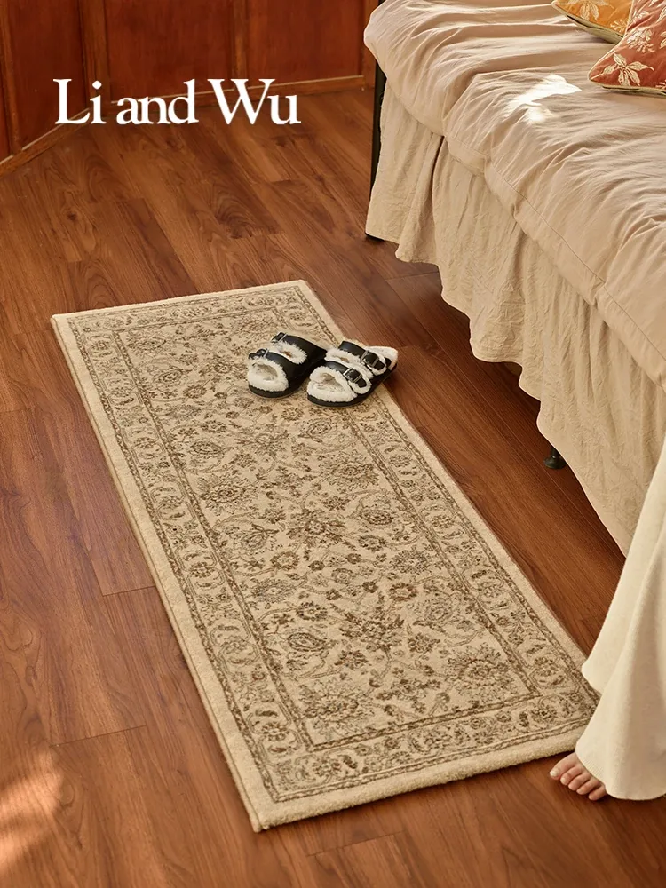 Keecyベッドサイドカーペット - クリーミーなアンティークスタイル、汚れに強く滑り止め機能付き!2026年新作、快適な寝室空間を演出します。