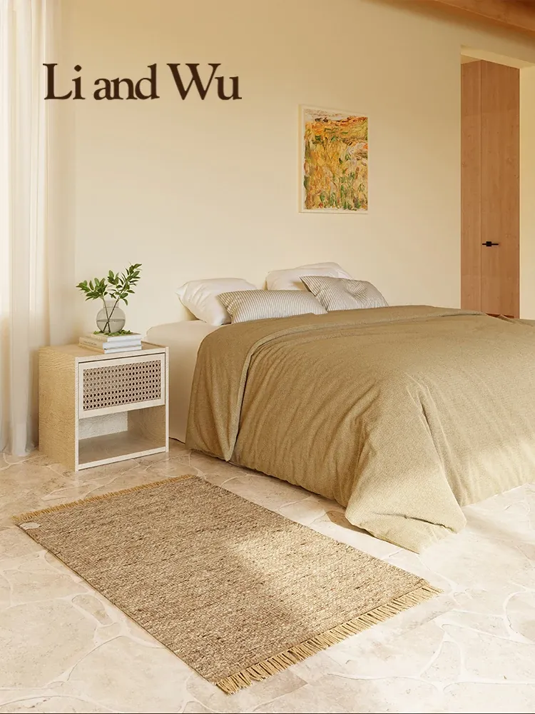 LiとWu インド直輸入 手作り麻ウール ベッドサイドマット おしゃれなフレンチスタイル 長方形ルームカーペット